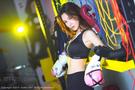 1127 长发年轻健身美女桃妖夭灰色胸衣开裆紧身裤
