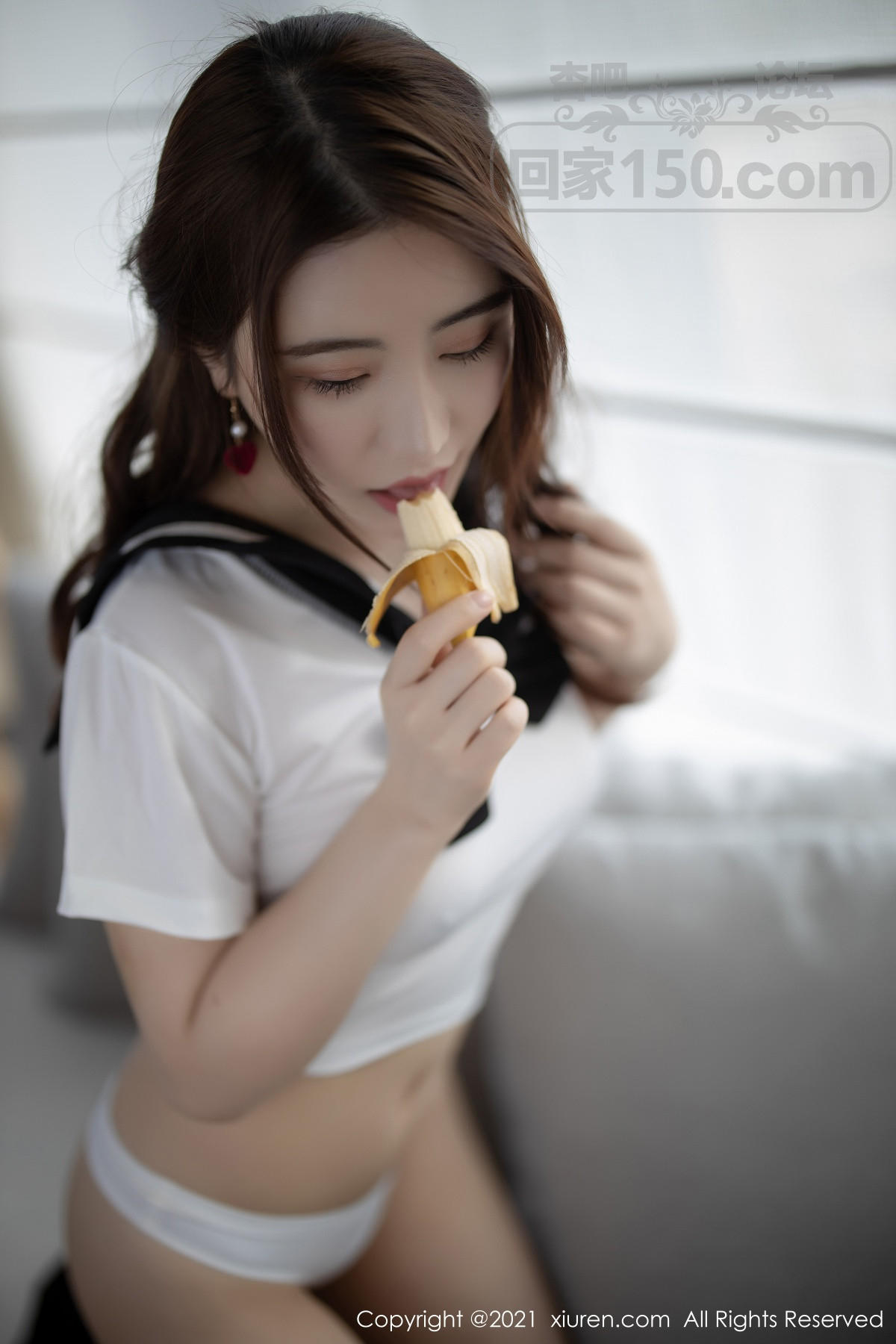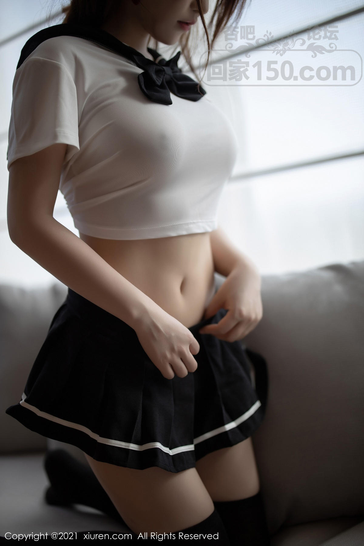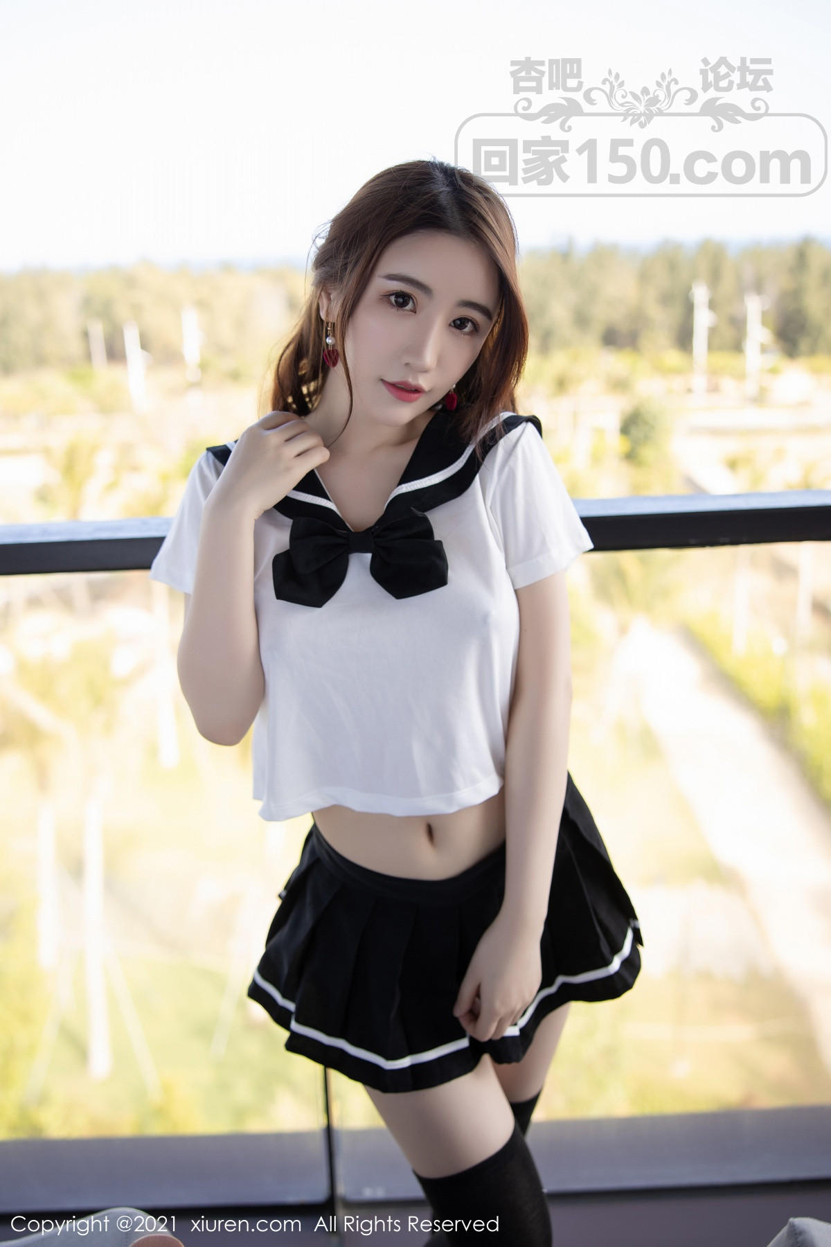 [美腿翘臀] 女神Cherry绯月樱三亚旅拍青春校服主题半脱秀完美曲线诱惑写真【50P】 |
