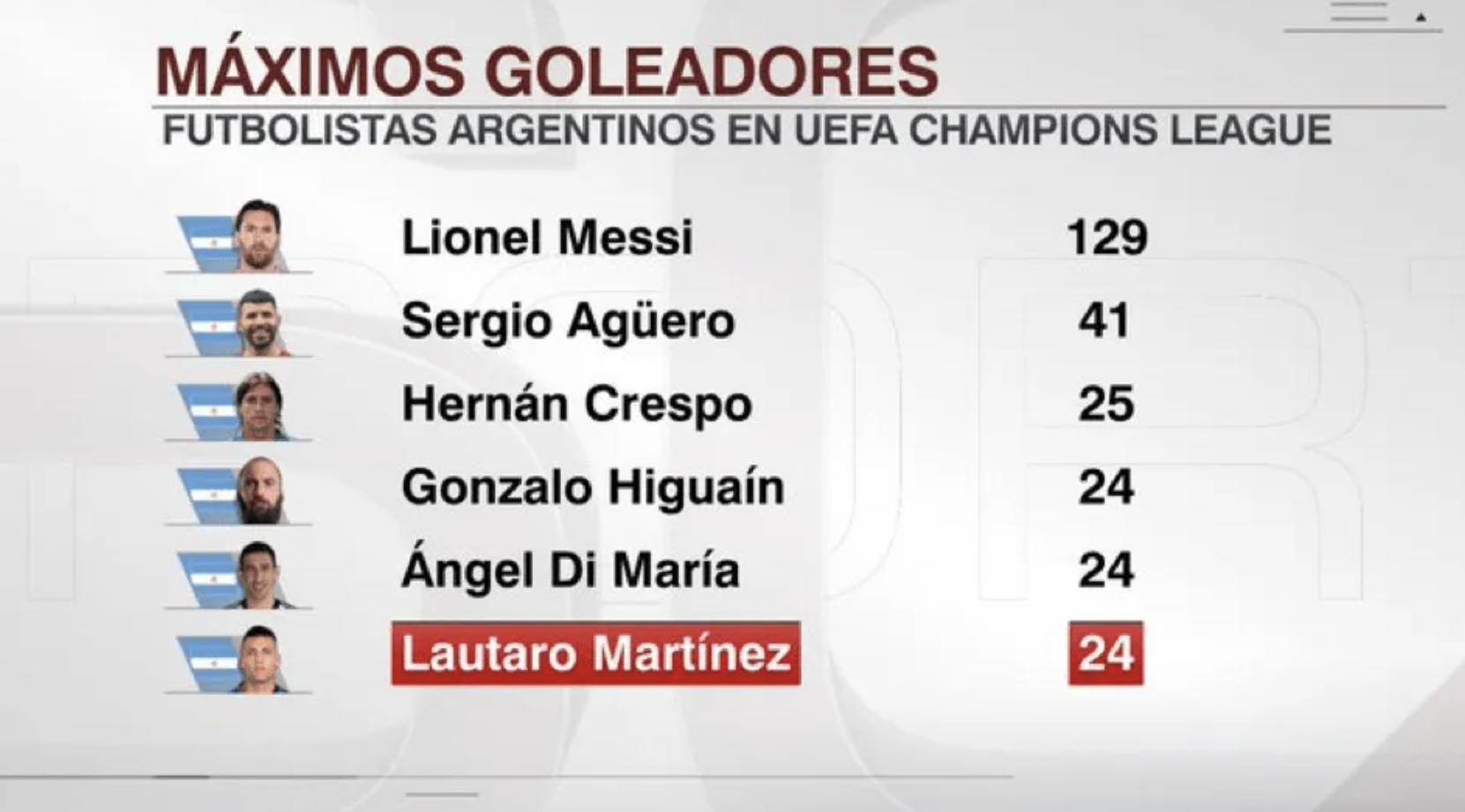 [|心得交流] 欧冠进球最多的阿根廷球员:梅西129球居首,劳塔罗24球第4 |