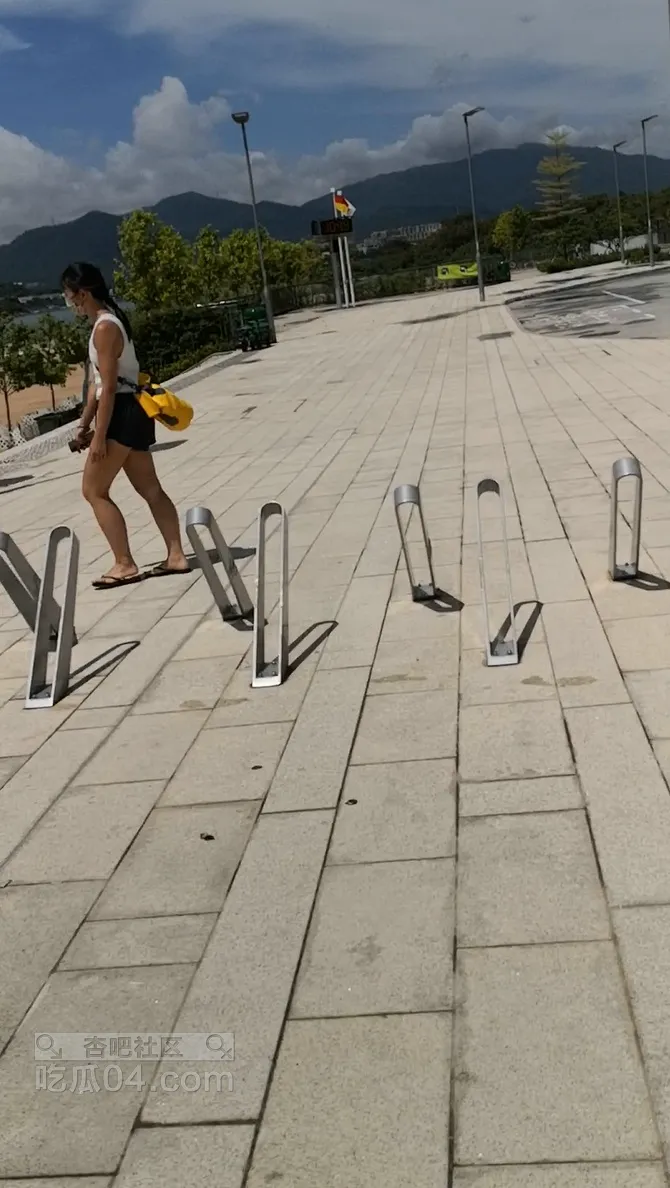 街拍白背心黑短裤少女展现性感大长腿【18P】