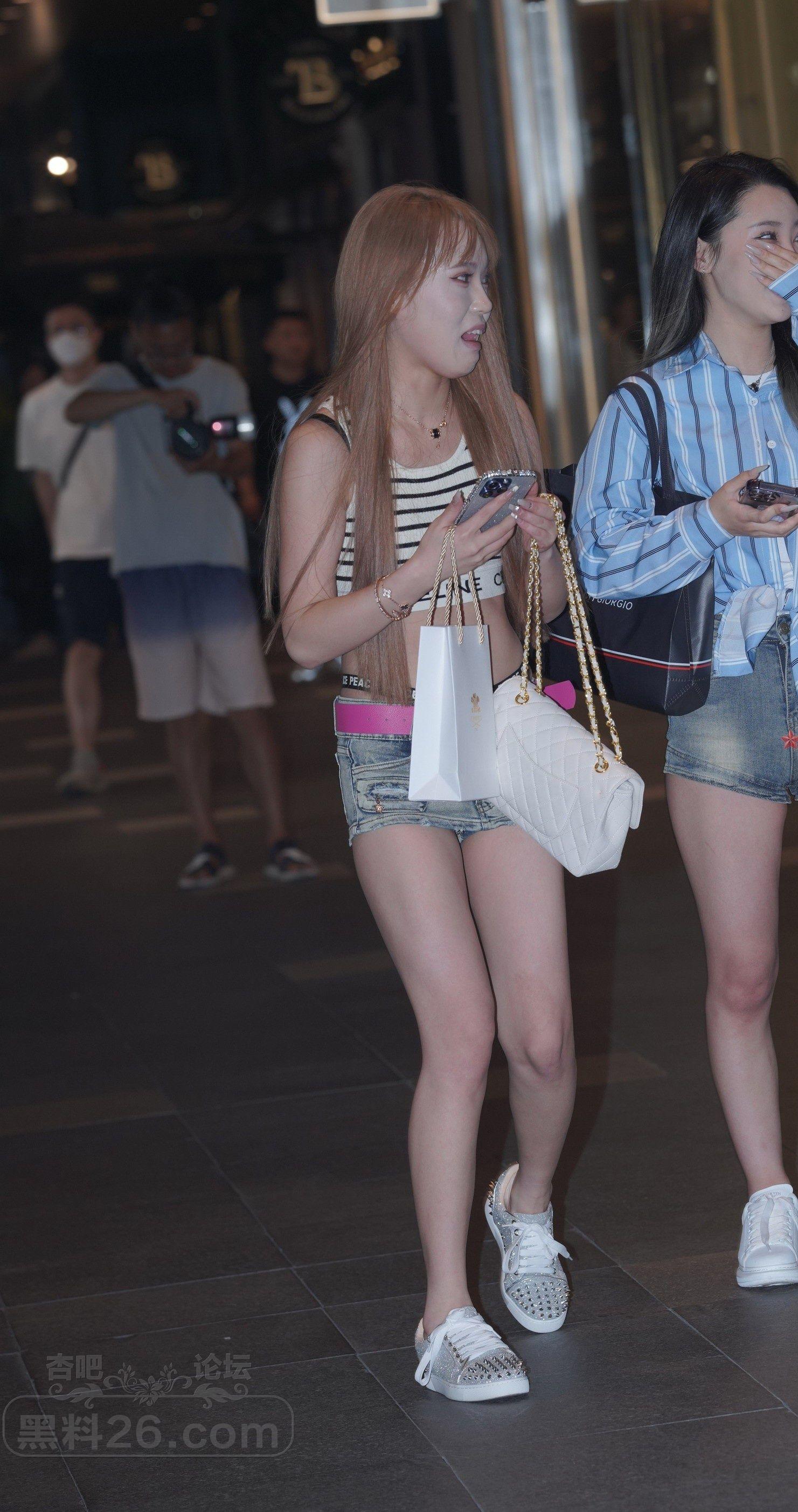 两个背心短裤性感美女夜晚出来逛夜市【10P】
